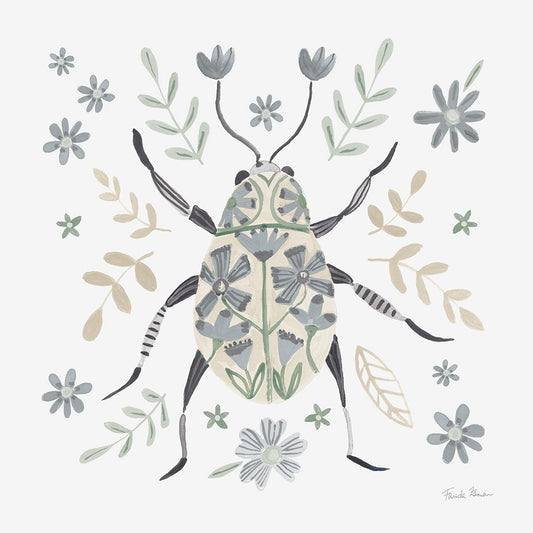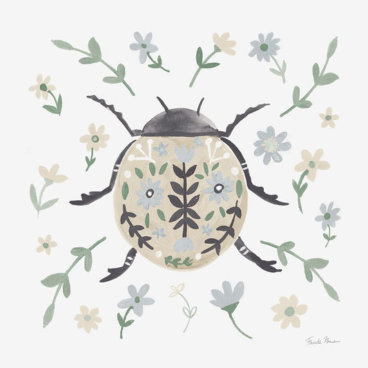 Folk Beetle I Neutral Black Ornate Wood Framed Art Print with Double Matting by Zaman, Farida