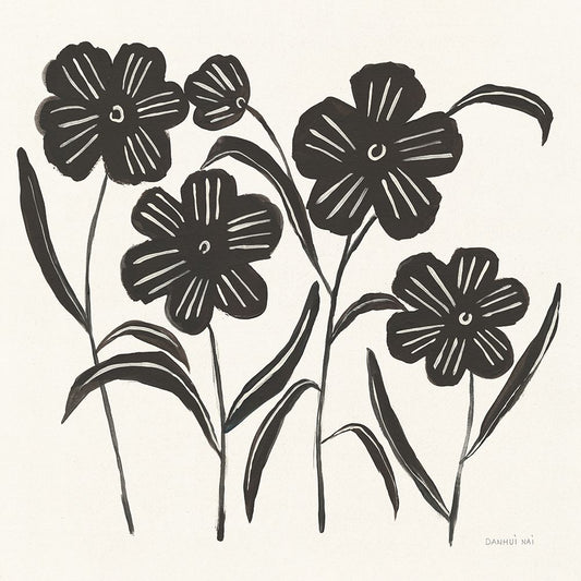 Floral Simplicity I Cream Black Ornate Wood Framed Art Print with Double Matting by Nai, Danhui