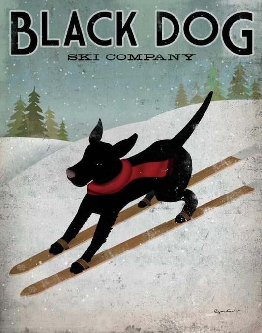 Black Dog Ski Black Ornate Wood Framed Art Print with Double Matting by Fowler, Ryan