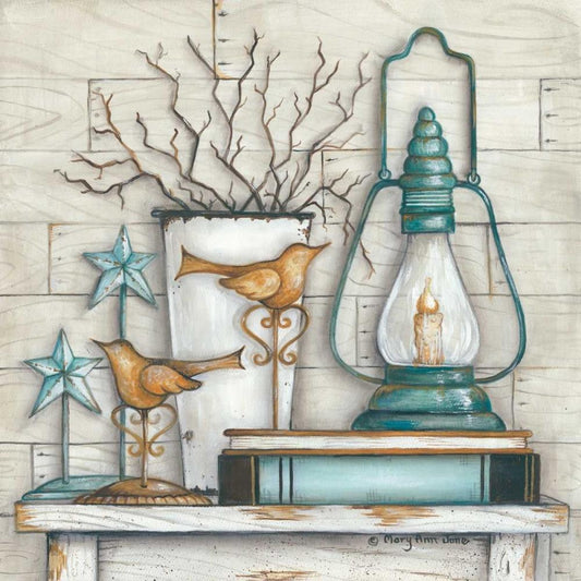 Lantern on Books White Modern Wood Framed Art Print with Double Matting by June, Mary Ann
