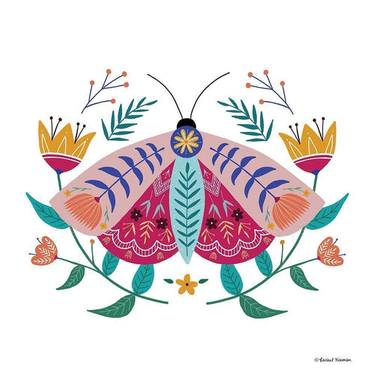 Folk Art Moth White Modern Wood Framed Art Print with Double Matting by Nieman, Rachel