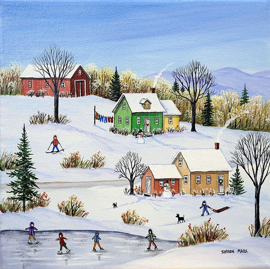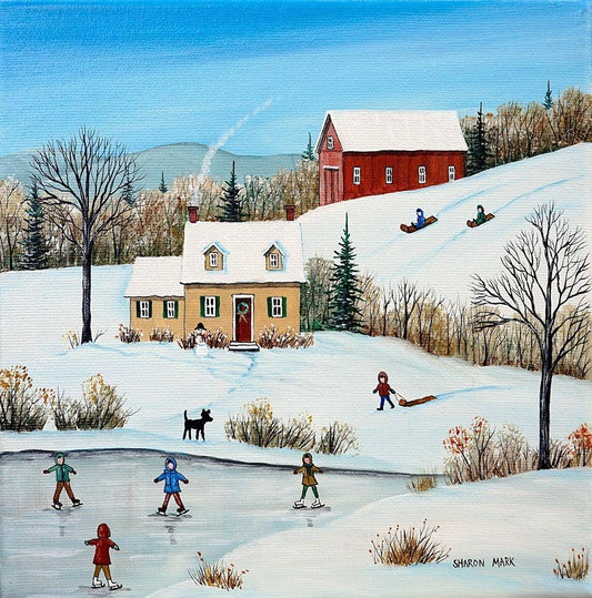 Fun Times in Winter Black Ornate Wood Framed Art Print with Double Matting by Mark, Sharon