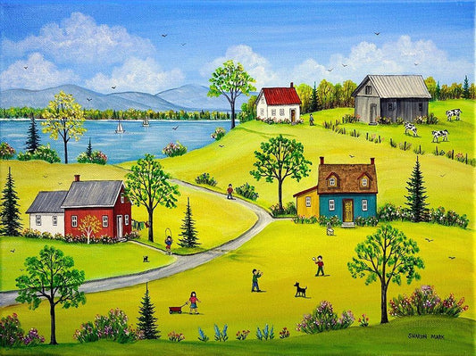 Lake Road Black Ornate Wood Framed Art Print with Double Matting by Mark, Sharon