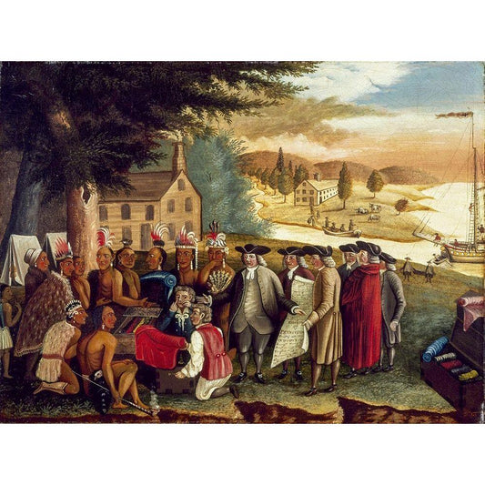 Penns Treaty with the Indians Black Modern Wood Framed Art Print with Double Matting by Hicks, Edward