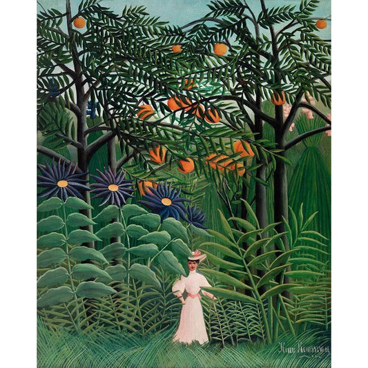 Woman Walking in an Exotic Forest Black Modern Wood Framed Art Print with Double Matting by Rousseau, Henri