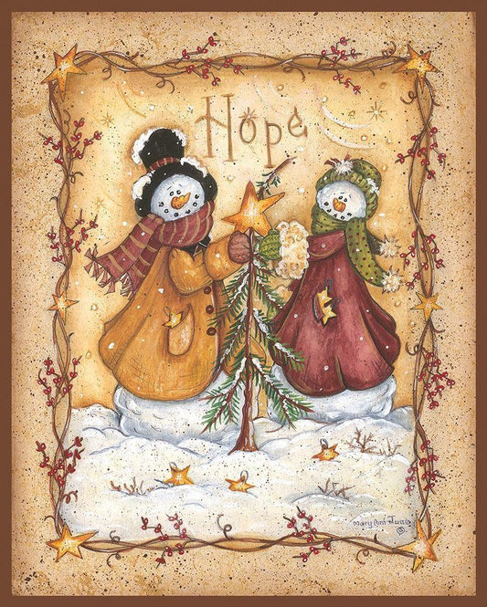 Snow Folk Hope White Modern Wood Framed Art Print with Double Matting by June, Mary Ann