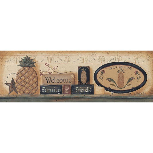 Welcome Family And Friends Black Modern Wood Framed Art Print with Double Matting by Britton, Pam
