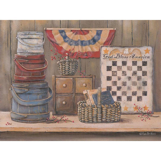 God Bless America Black Modern Wood Framed Art Print with Double Matting by Britton, Pam