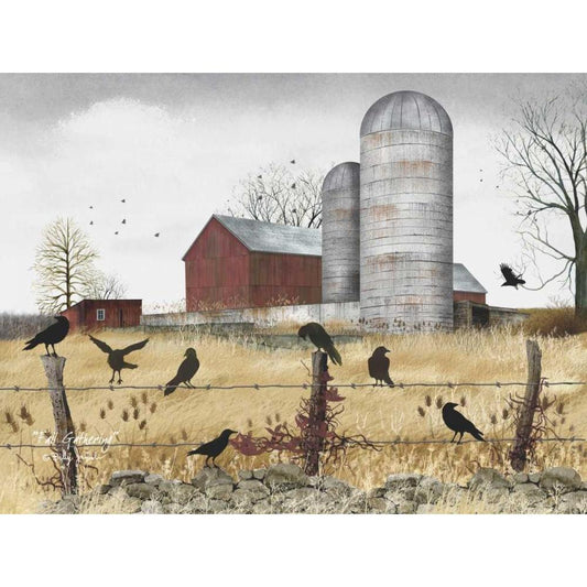 Fall Gathering Black Modern Wood Framed Art Print with Double Matting by Jacobs, Billy