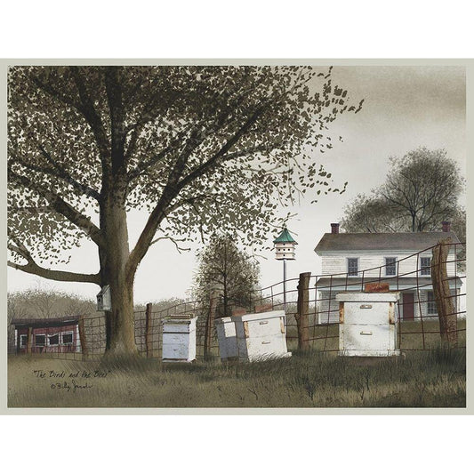 Birds and Bees Black Modern Wood Framed Art Print with Double Matting by Jacobs, Billy
