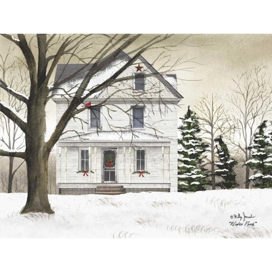 Winter Porch Black Modern Wood Framed Art Print with Double Matting by Jacobs, Billy