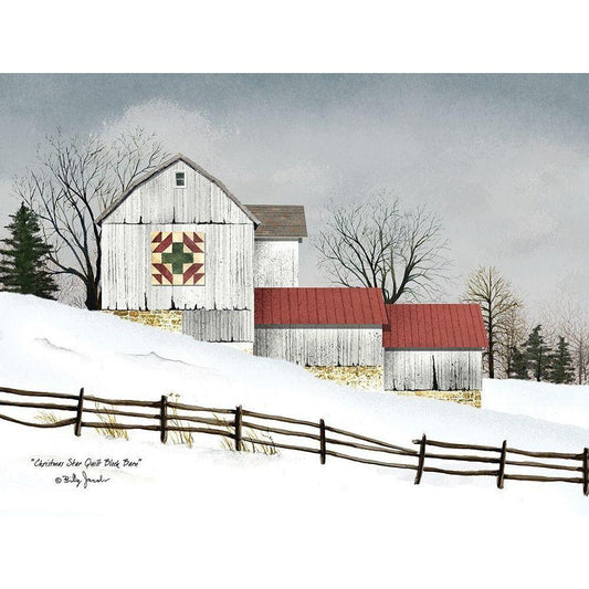 Christmas Star Quilt Block Barn Black Modern Wood Framed Art Print with Double Matting by Jacobs, Billy