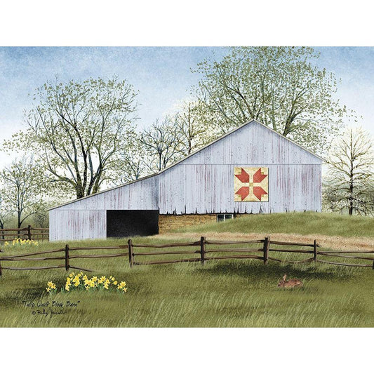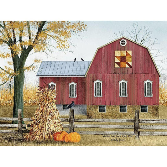 Autumn Leaf Quilt Block Barn Black Modern Wood Framed Art Print with Double Matting by Jacobs, Billy
