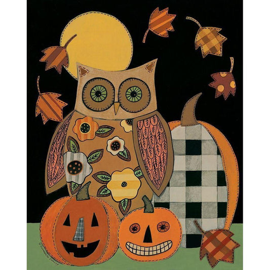Floral Owl and Pumpkins Black Modern Wood Framed Art Print with Double Matting by Deming, Bernadette