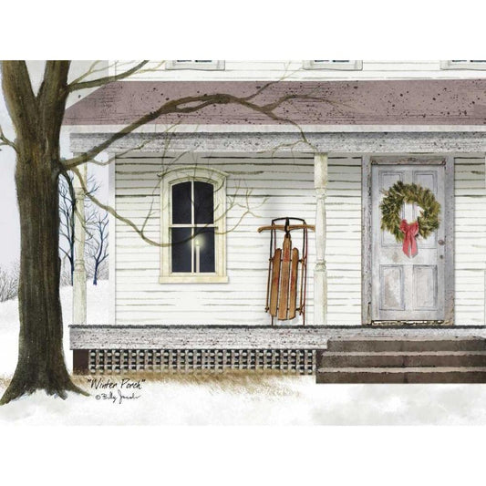 Winter Porch Black Modern Wood Framed Art Print with Double Matting by Jacobs, Billy