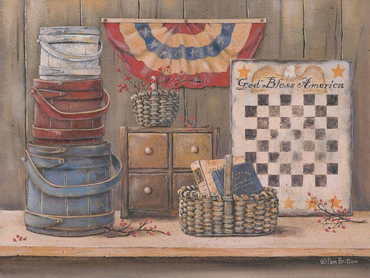 God Bless America White Modern Wood Framed Art Print with Double Matting by Britton, Pam