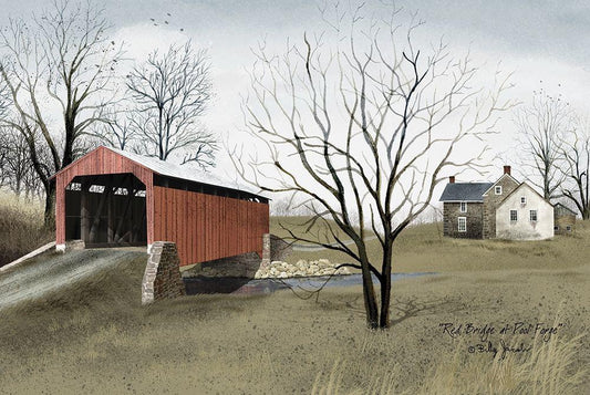 Red Bridge at Pool Forge White Modern Wood Framed Art Print with Double Matting by Jacobs, Billy
