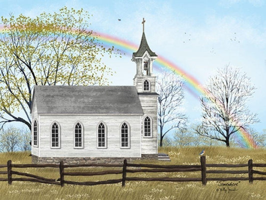 Little Church on the Prairie White Modern Wood Framed Art Print with Double Matting by Jacobs, Billy