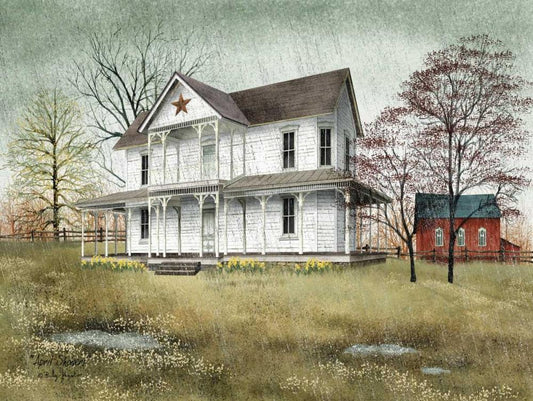 April Showers White Modern Wood Framed Art Print with Double Matting by Jacobs, Billy
