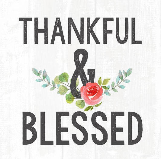 Thankful and Blessed White Modern Wood Framed Art Print with Double Matting by Dos Santos, Bella