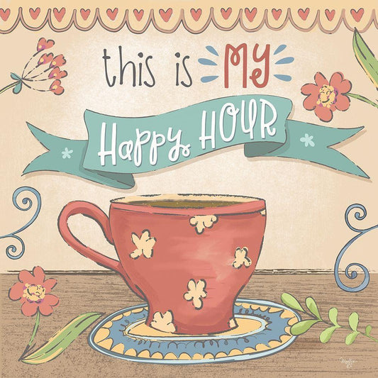 Coffee Happy Hour Black Modern Wood Framed Art Print by Mollie B.