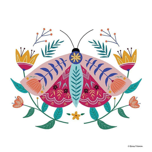 Folk Art Moth Black Modern Wood Framed Art Print by Nieman, Rachel