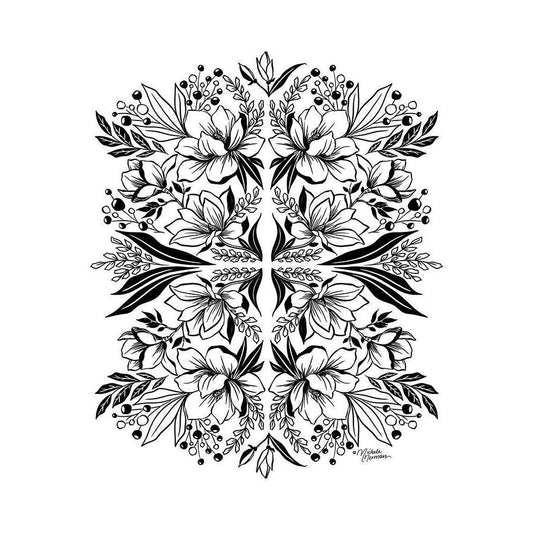 Magnolia Medley Black Modern Wood Framed Art Print by Norman, Michele