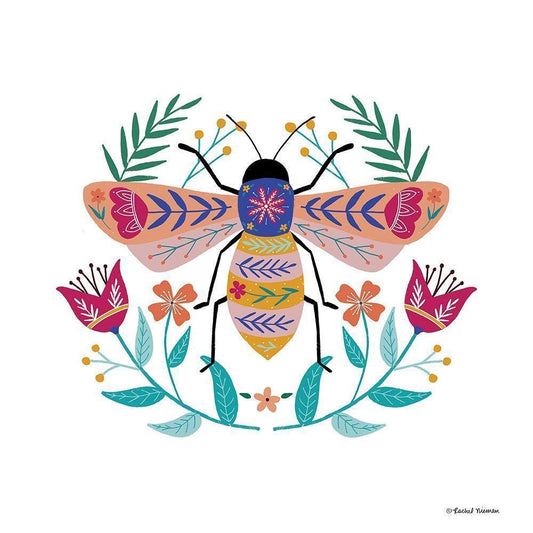 Folk Art Bee Black Modern Wood Framed Art Print by Nieman, Rachel