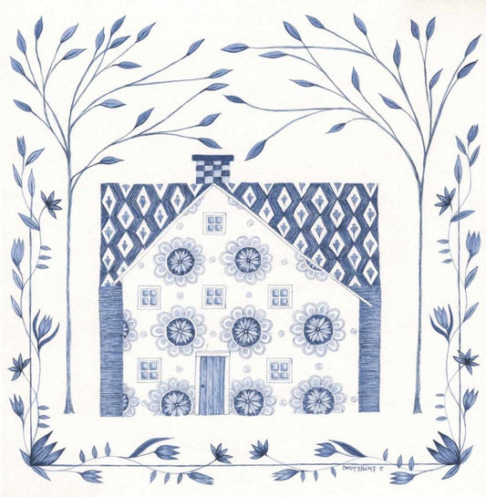 Blue House White Modern Wood Framed Art Print with Double Matting by Shamp, Cindy