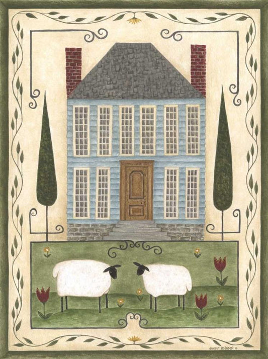 Country Blue House III White Modern Wood Framed Art Print with Double Matting by Shamp, Cindy