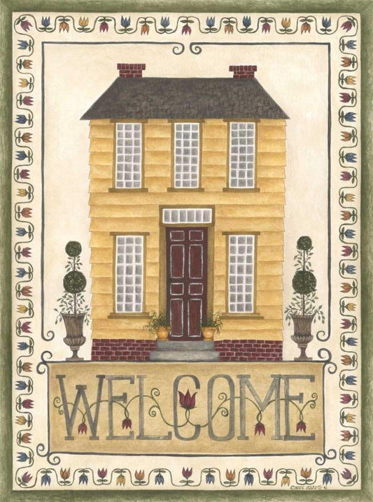 Yellow House Welcome White Modern Wood Framed Art Print with Double Matting by Shamp, Cindy
