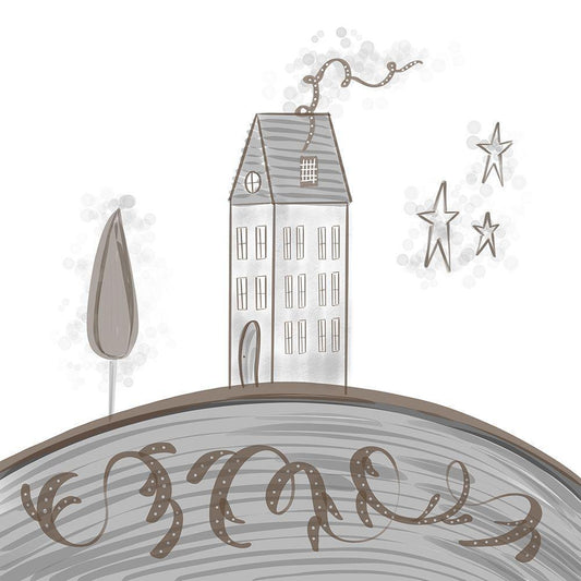 Primitive House on Hill Black Modern Wood Framed Art Print by Moss, Tara