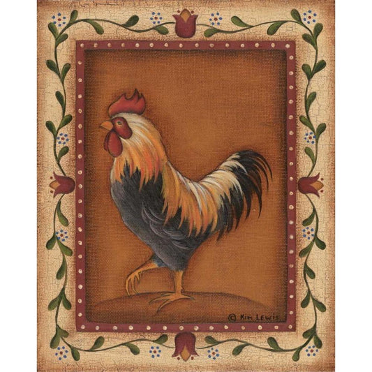 Black Rooster Black Modern Wood Framed Art Print by Lewis, Kim