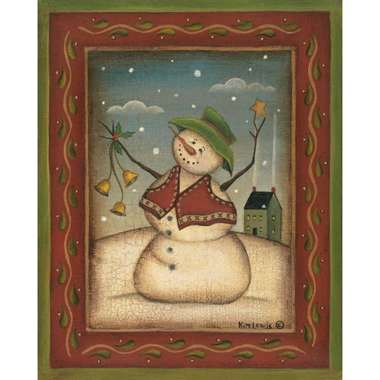snowman Black Modern Wood Framed Art Print by Lewis, Kim