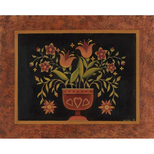 Floral with Hearts Black Modern Wood Framed Art Print by Lewis, Kim