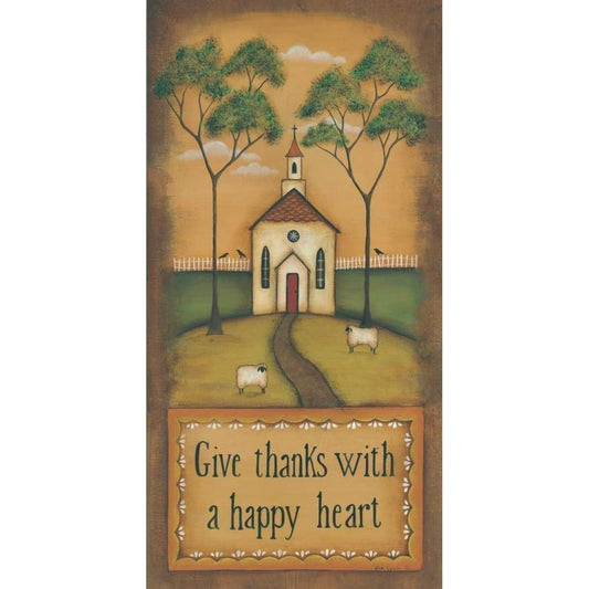 Give Thanks With a Happy Heart Black Modern Wood Framed Art Print by Lewis, Kim