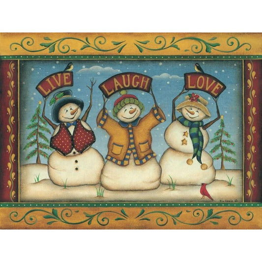 Peace Snowman Black Modern Wood Framed Art Print by Lewis, Kim