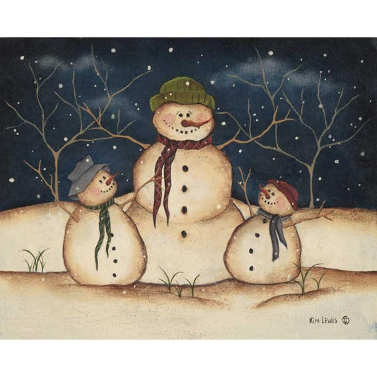 Three Snowmen Black Modern Wood Framed Art Print by Lewis, Kim