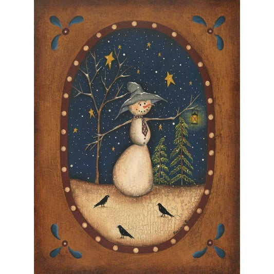 Snowman with Crow Black Modern Wood Framed Art Print by Lewis, Kim