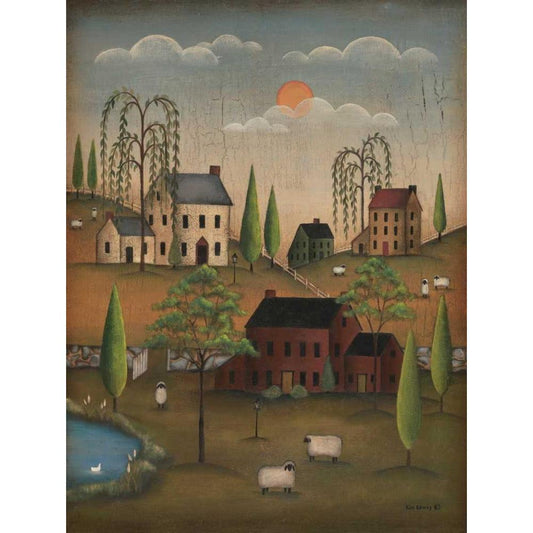 Village with Sheep Black Modern Wood Framed Art Print by Lewis, Kim