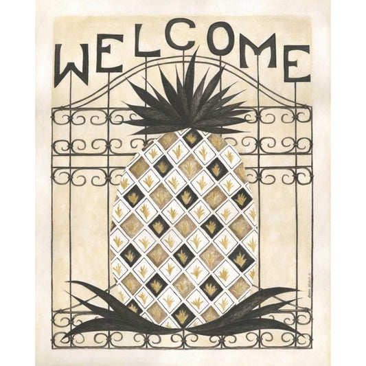 Welcome Pineapple Black Modern Wood Framed Art Print by Shamp, Cindy