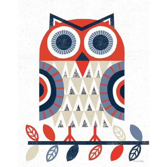 Folk Lodge Owl Red Navy Black Modern Wood Framed Art Print by Mullan, Michael