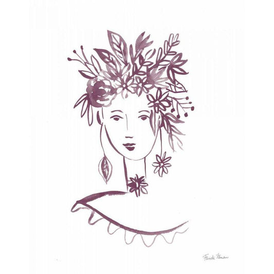 Flower Girl I Plum Black Modern Wood Framed Art Print by Zaman, Farida