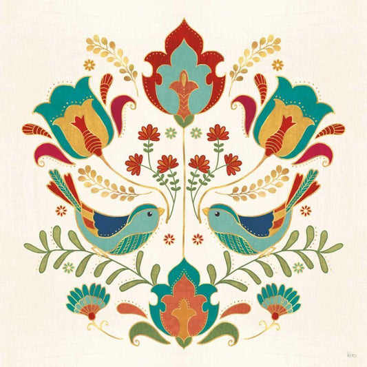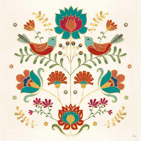 Folk Floral I Black Modern Wood Framed Art Print by Charron, Veronique