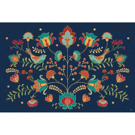 Folk Floral I Dark Black Modern Wood Framed Art Print by Charron, Veronique
