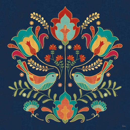 Folk Floral II Dark Black Modern Wood Framed Art Print by Charron, Veronique