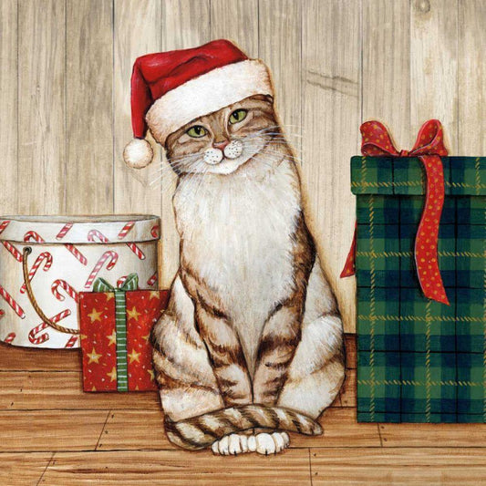 Christmas Kitty on Planked Wood Black Modern Wood Framed Art Print by Brown, David Carter