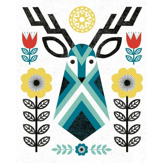 Folk Lodge Deer II V2 Teal Black Modern Wood Framed Art Print by Mullan, Michael