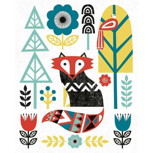 Folk Lodge Fox V2 Teal Black Modern Wood Framed Art Print by Mullan, Michael