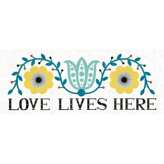 Folk Lodge Love Lives Here V2 Teal Black Modern Wood Framed Art Print by Mullan, Michael